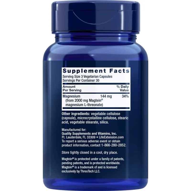 Testen Sie Neuro-Mag® Magnesium L-Threonat in einem Behälter mit 90 vegetarischen Kapseln für eine einmonatige Einnahme. Die empfohlene Tagesdosis von drei Kapseln liefert 2.000 mg Magnesium-L-Threonat. Obwohl darin nur 144 mg elementares Magnesium enthalten sind, ist es aufgrund seiner verbesserten Aufnahme ins Blut- und Nervensystem eine exzellente Form von Magnesium für ein verbessertes Gedächtnis und eine bessere kognitive Funktion.