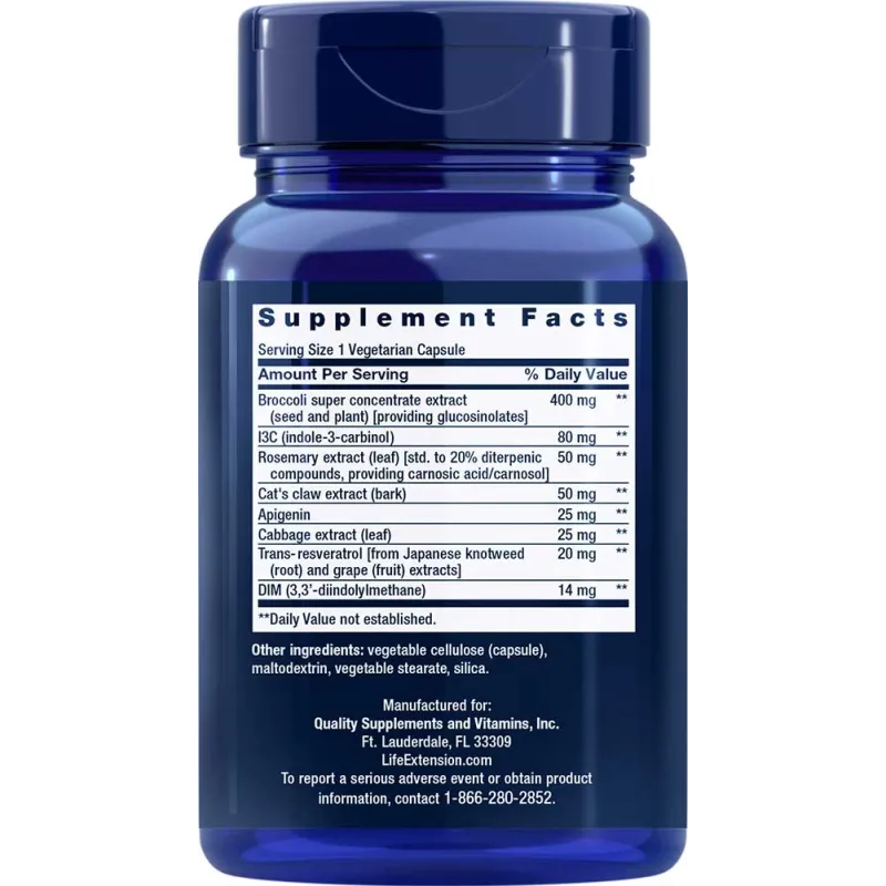 Wissenschaftler haben spezifische Extrakte aus Kreuzblütlern wie Brokkoli, Blumenkohl, Weißkohl und Rosenkohl identifiziert, die zur Aufrechterhaltung eines gesunden Hormonspiegels beitragen.1-11 Die Aufrechterhaltung eines optimalen Hormonhaushalts ist für jede Anti-Aging-Strategie unerlässlich. Dreifachaktiver Kreuzblütlerextrakt mit Resveratrol kombiniert einige dieser Pflanzenextrakte zu der bisher umfassendsten pflanzlichen Zusammenstellung auf Lebensmittelbasis zum Zellschutz.Portionsgröße: 1 vegetarische Kapsel
