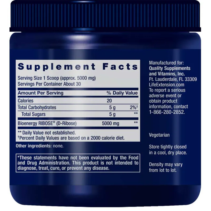 | Bioenergie RIBOSE® (Non-GMO D-Ribose) | 5000 mg |