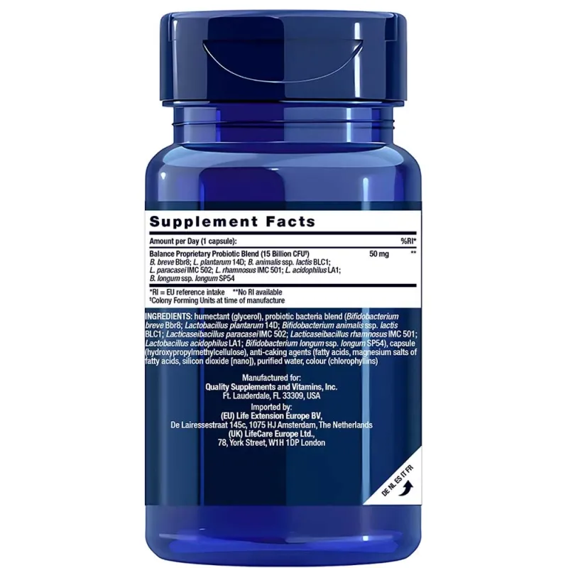 | Συστατικά: Μείγμα προβιοτικών βακτηρίων (Bifidobacterium breve Bbr8; Lactobacillus plantarum 14D; Bifidobacterium animalis ssp. lactis BLC1; Lacticaseibacillus paracasei IMC 502; Lacticaseibacillus rhamnosus IMC 501; Lactobacillus acidophilus LA1; Bifidobacterium longum ssp. longum SP54), παράγοντας διογκώσεως (μικροκρυσταλλική κυτταρίνη/ζελέ κυτταρίνης), κάψουλα (υδροξυπροπυλομεθυλοκυτταρίνη), αντισυσσωματικοί παράγοντες (διοξείδιο του πυριτίου [νανο], άλατα μαγνησίου λιπαρών οξέων) | |