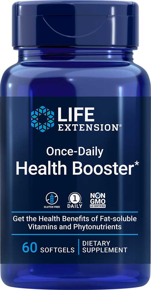 Το Once-Daily Health Booster της Life Extension® (προηγουμένως γνωστό ως Super Booster) είναι μια οικονομικά αποδοτική φόρμουλα που συνδυάζει μια ποικιλία πολύτιμων θρεπτικών συστατικών σε μία μαλακή κάψουλα. Το Health Booster περιέχει πολλά κρίσιμα θρεπτικά συστατικά που λείπουν από τις περισσότερες πολυβιταμινικές φόρμουλες, σε μια βολική ημερήσια μαλακή κάψουλα, σχεδιασμένη για να συμπληρώνει τις φόρμουλες Life Extension Mix ή One/Two-Per-Day.Μόνο μία μαλακή κάψουλα του νέου Health Booster που λαμβάνεται με ένα γεύμα πλούσιο σε λιπαρά προσφέρει βέλτιστες δόσεις λιποδιαλυτών βιταμινών, καροτενοειδών και άλλων θρεπτικών συστατικών που χρειάζονται τα άτομα που γερνούν. Λαμβανόμενα ξεχωριστά, τα συστατικά του Once-Daily Health Booster θα κόστιζαν δύο έως τρεις φορές περισσότερο.