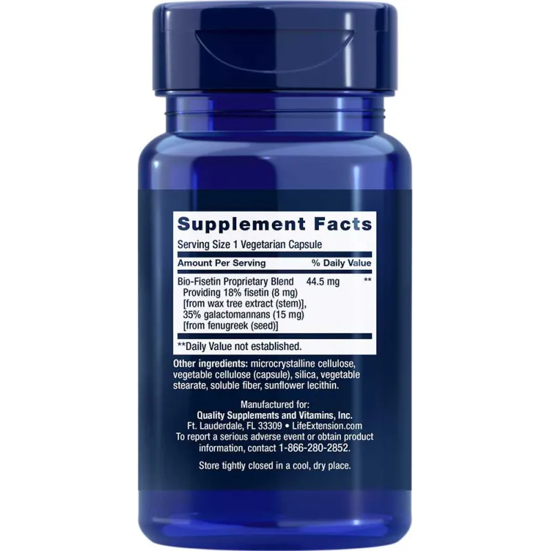 Ιδιόκτητο Μείγμα Bio-Fisetin: Παρέχοντας 18% φισετίνη (8 mg) [από εκχύλισμα δέντρου κεριού (στέλεχος)], 35% γαλακτομαννάνες (15 mg) [από τριγωνέλλα (σπόρος)] |