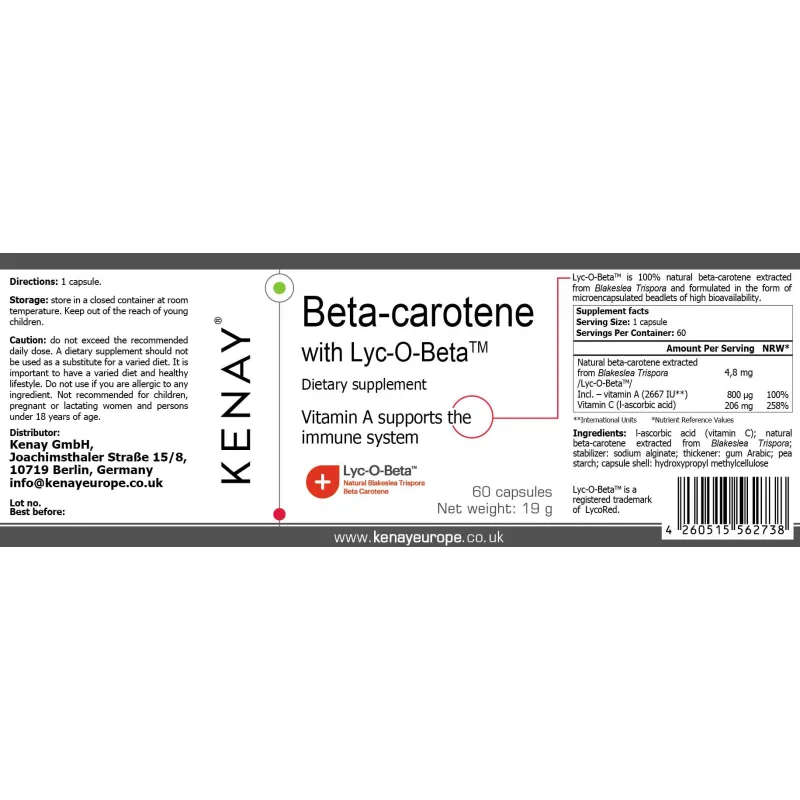 Η βήτα-καροτίνη που περιέχεται στο συμπλήρωμά μας: Lyc-O-Beta™ είναι 100% φυσική, παραγόμενη από τον μύκητα Blakeslea Trispora. Η ειδική, πατενταρισμένη διαδικασία παραγωγής βήτα-καροτίνης που χρησιμοποιείται στο Lyc-O-Beta™ προσφέρει ένα προϊόν χωρίς ΓΤΟ, πιο σταθερό και με πολύ υψηλότερη βιοδιαθεσιμότητα.