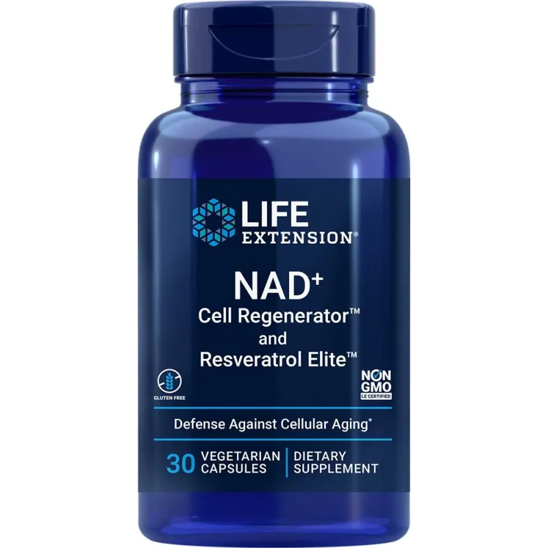 NAD+ Cell Regenerator™ with Resveratrol Elite combines unique nutrients for longevity and youthful cellular energy production. NIAGEN®, trans-resveratrol, quercetin, and fisetin support healthy cellular metabolism, fight fatigue, regulates genes that control aging, and more.