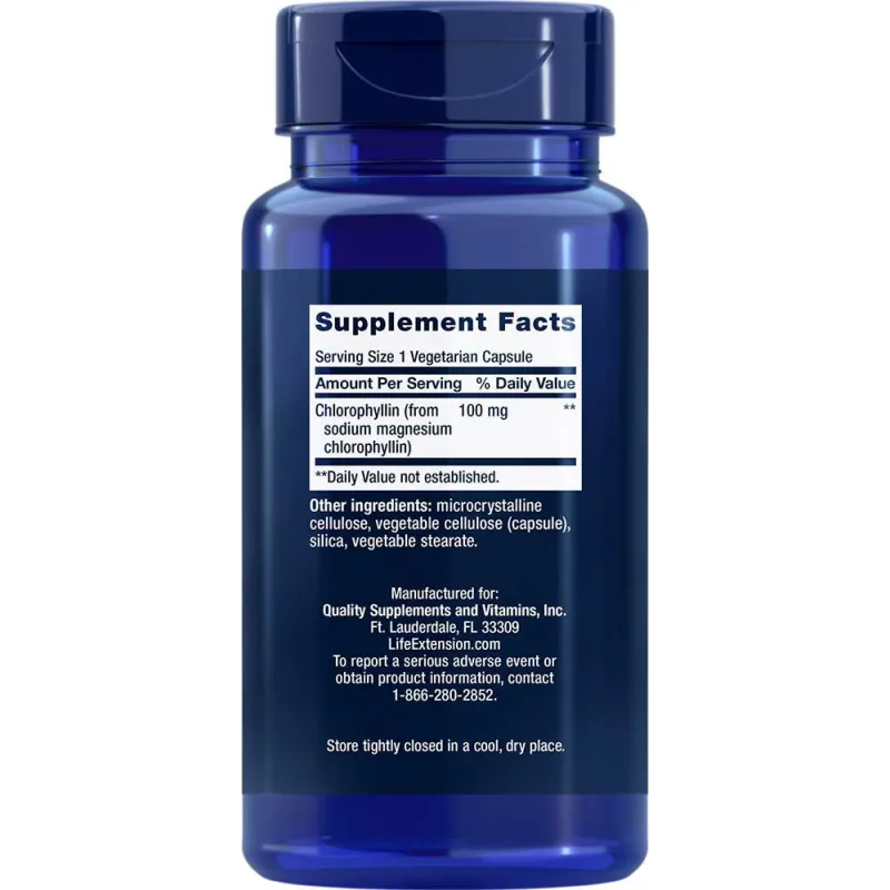 | Chlorophyllin (from sodium magnesium chlorophyllin) | 100 mg |
