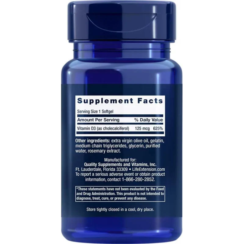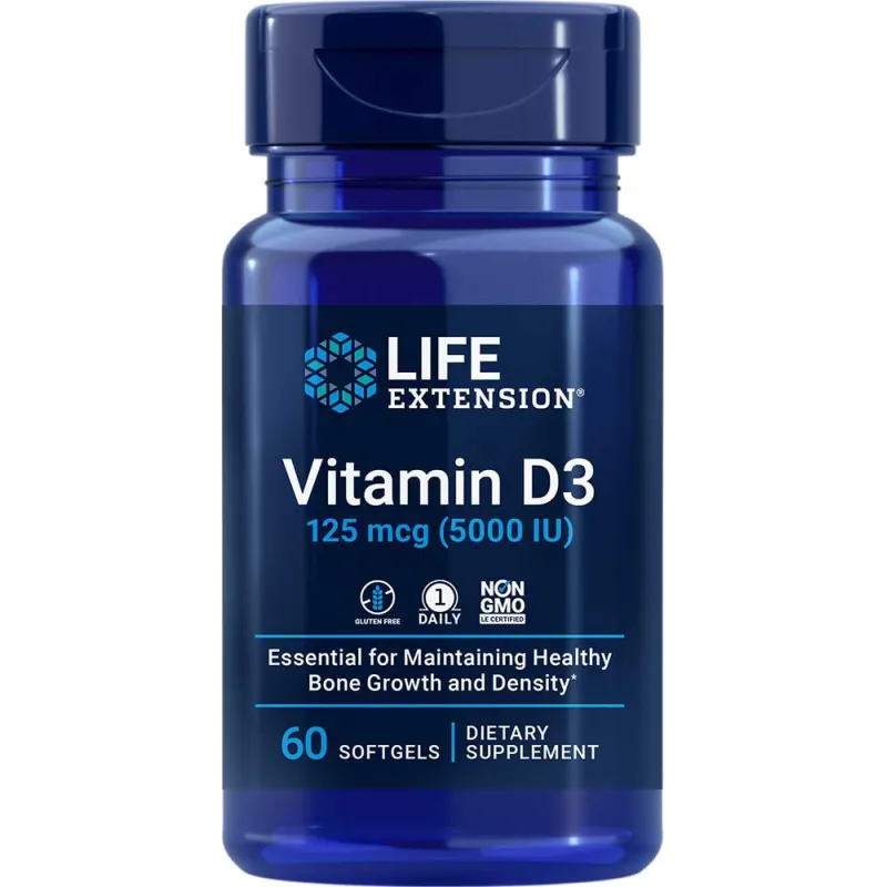 This vitamin D3 supplement delivers 5,000 IU of vitamin D3 as cholecalciferol per softgel. We suggest that you take a 25-hydroxy vitamin D blood test after 3 months to assess and adjust your dosage. Your optimal blood levels should be 50–80 ng/ml year-round.