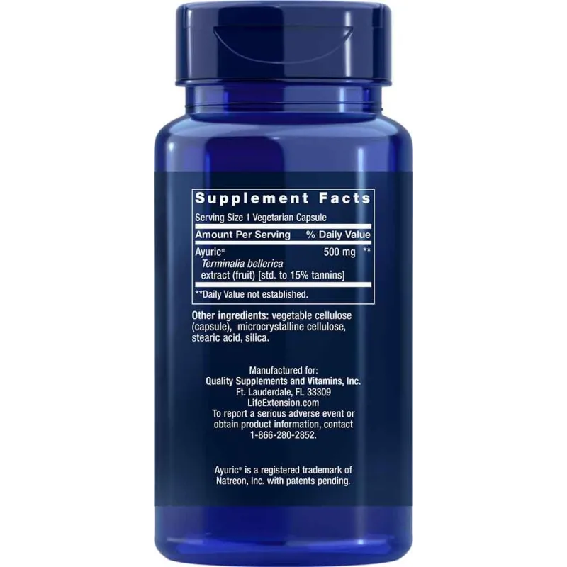 | Extracto de Ayuric™ Terminalia bellerica (fruta) [std. al 15% de taninos] | 500 mg |