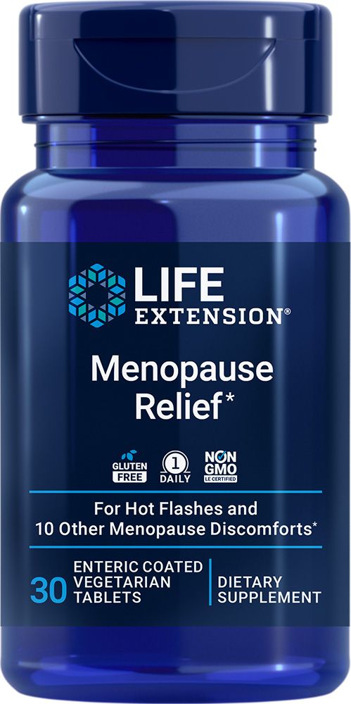 Alivio de la menopausia utiliza extracto clínicamente estudiado de raíz de ruibarbo siberiano (Rheum rhaponticum L.) para tratar los sofocos, los sudores nocturnos, la irritabilidad, los cambios de humor, los trastornos del sueño, el agotamiento, las molestias en las articulaciones y los músculos, la sequedad vaginal, la salud urinaria y la función sexual asociada con la menopausia. Es un alivio completo de la menopausia en una práctica tableta que se toma una vez al día.