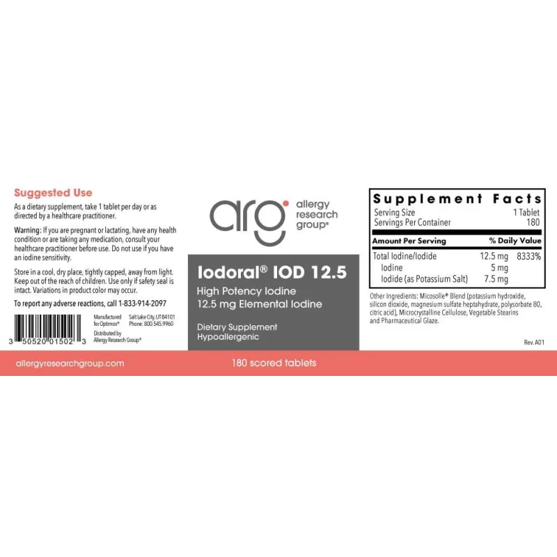 Iodoral es la versión en tableta de la solución de Lugol. Contiene yodo elemental y yoduro de potasio. Viene en dos versiones: 12,5 mg y 50 mg. La versión de 12,5 mg se empaqueta con 90 y 180 tabletas, y la versión de 50 mg se empaqueta con 30 y 90 tabletas.