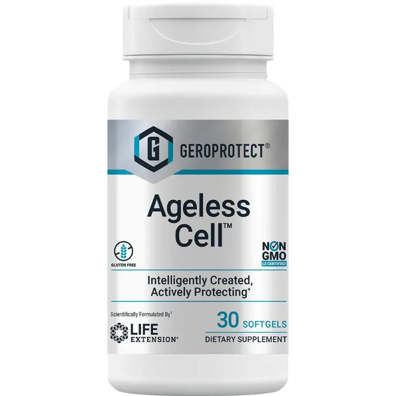 Ageless Cell™ es el primer suplemento de nuestra revolucionaria línea GEROPROTECT™. Es una fórmula única diseñada para inhibir la senescencia celular, una parte natural del proceso de envejecimiento en el que las células ya no funcionan de manera óptima. Ageless Cell™ ayuda a rejuvenecer las células casi senescentes y fomenta el proceso saludable del cuerpo para lidiar con las senescentes. Formulado por una asociación entre Life Extension® e Insilico Medicine, Inc., Ageless Cell™ puede ayudar a hacer retroceder el reloj a nivel celular.Beneficios de un vistazo: