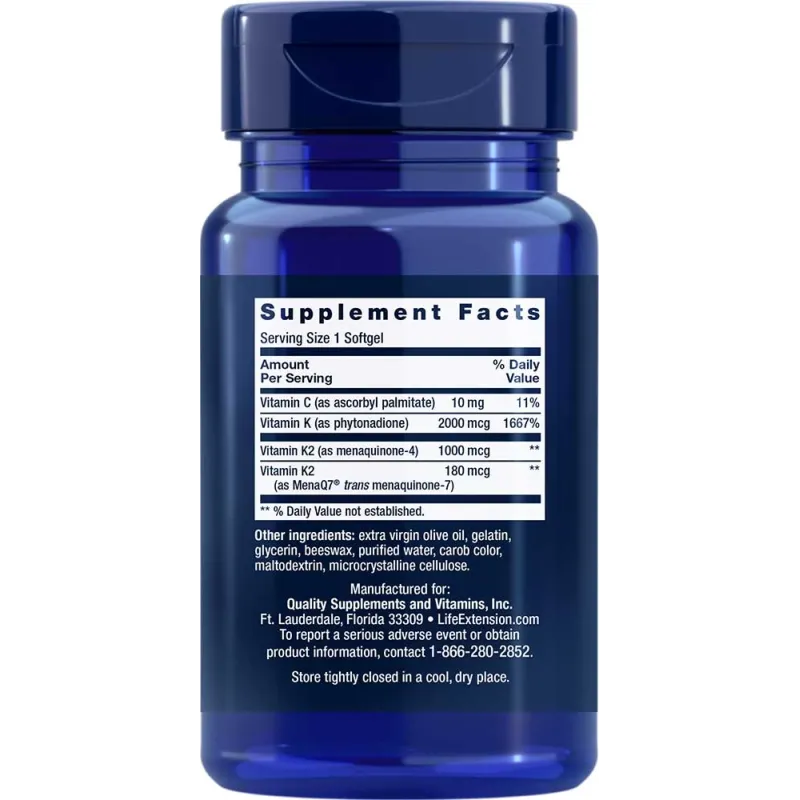 Super K proporciona TRES tipos de vitamina K: vitamina K1 y dos formas de K2, menaquinona-4 (MK-4) y menaquinona-7 (MK-7). Por lo tanto, tomar Super K todos los días es una buena manera de asegurarse de obtener suficiente cantidad de este nutriente esencial para la salud ósea y vascular.