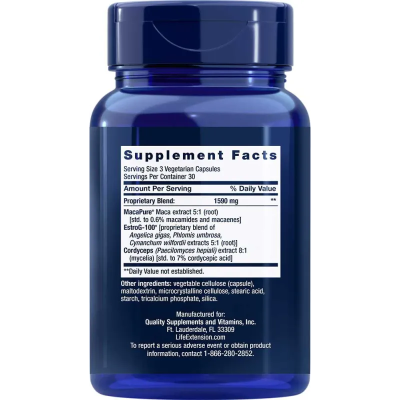 Sexe amélioré pour les femmes 50+ contient de la racine de maca (Lepidium peruvianum), de l'extrait de cordyceps et un mélange breveté d'extraits de plantes appelé EstroG-100®. Ce supplément est formulé spécifiquement pour soutenir le confort, la fonction et la réponse sexuelle saine d'une femme, y compris pour celles qui pourraient être en ménopause.