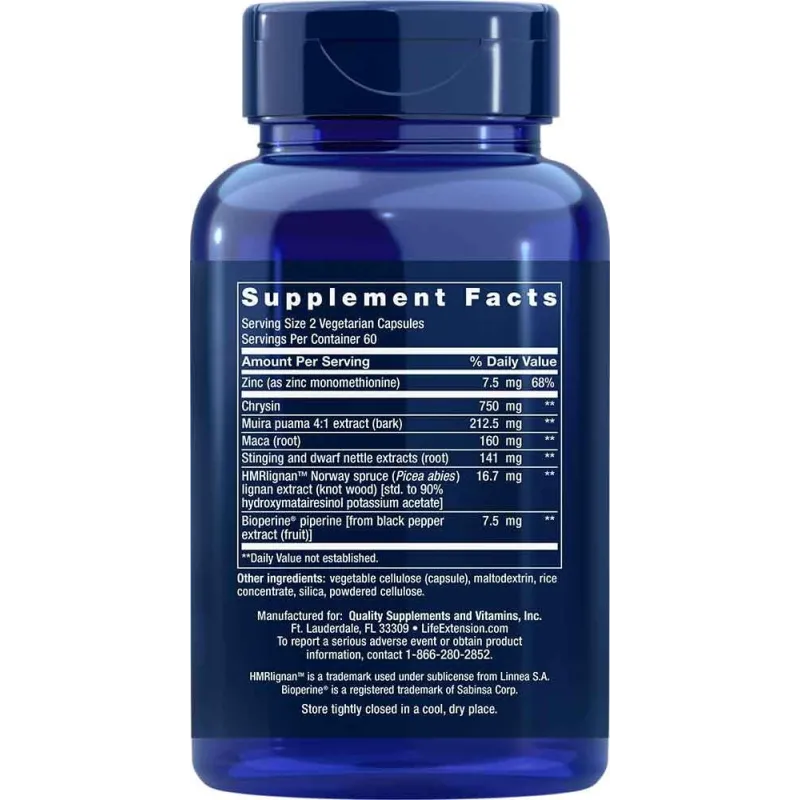 - Les extraits de chrysine et de racine d'ortie travaillent ensemble pour réduire la conversion de la testostérone en œstrogène.4,5