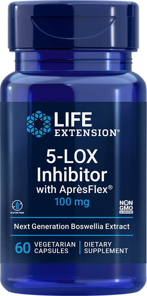 La Boswellia est un extrait qui peut inhiber les facteurs inflammatoires pour favoriser la santé des articulations et des artères. Dans ce supplément, nous utilisons une forme standardisée de boswellia appelée AprèsFlex® qui absorbe dans le sang 52% de plus que les extraits de boswellia précédemment disponibles. Chaque capsule végétale de 5-LOX Inhibitor avec AprèsFlex® apporte 100 mg de cet extrait innovant.