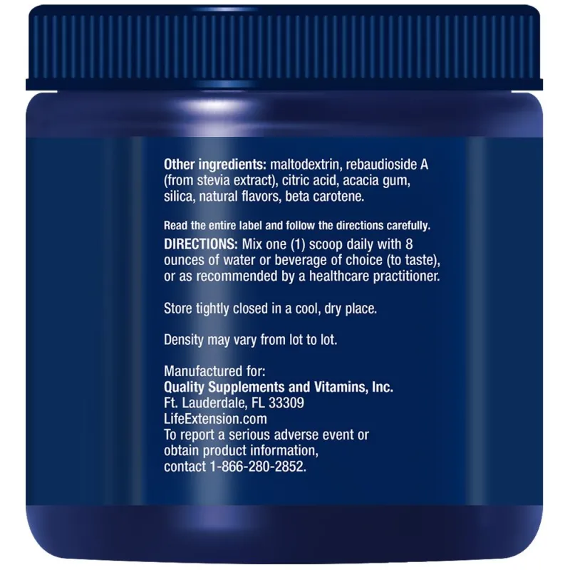 Autres ingrédients : maltodextrine, rébaudioside A (issu d'extrait de stevia), acide citrique, gomme d'acacia, silice, arômes naturels, bêta-carotène. |