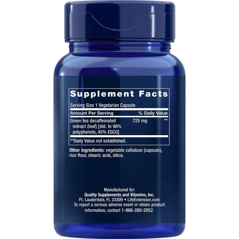 Una capsula dell'estratto di tè verde Mega di Life Extension fornisce più polifenoli di quelli che si ottengono bevendo sette tazze di tè verde. Questo estratto di tè verde è standardizzato al 98% di polifenoli e contiene 326,25 mg di EGCG, di gran lunga il più importante polifenolo fornito dal tè verde.