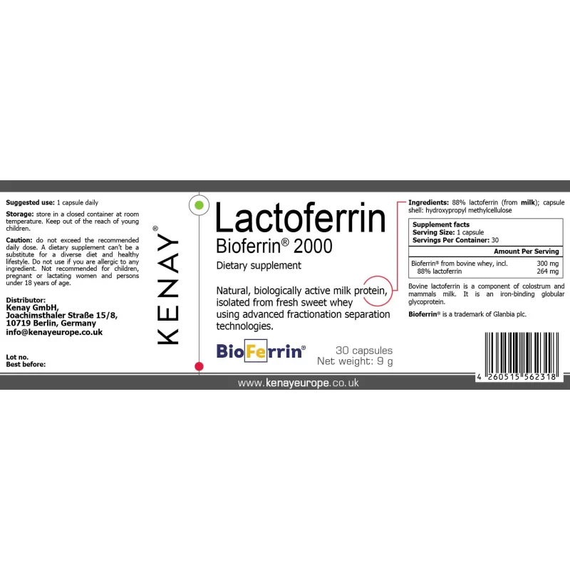Ingredienti: 88% lattoferrina (dal latte); involucro della capsula: idrossipropilmetilcellulosa |