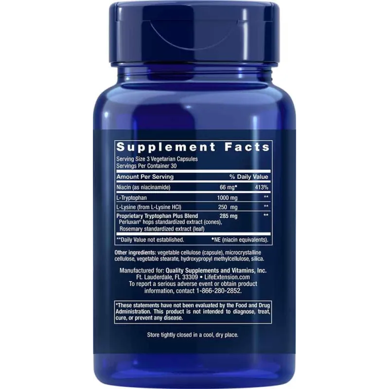 La serotonina è un neurotrasmettitore nel cervello associato a stati d'animo positivi e sonno riposante.1-4 Per produrre e mantenere livelli ottimali di serotonina, il tuo corpo ha bisogno del triptofano, un aminoacido essenziale che il corpo non può produrre.1Dose: 3 capsule vegetariane
