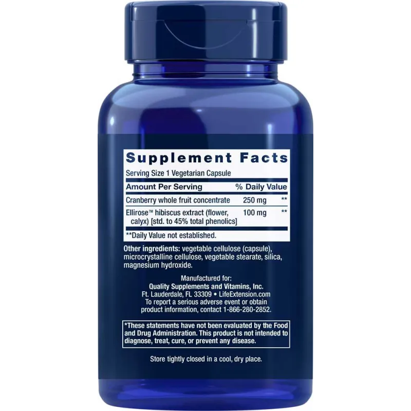 Ogni capsula contiene polifenoli di ibisco e un concentrato completo di mirtilli rossi con OPC, antociani e antiossidanti, che offre gli stessi benefici di bere 28 once di cocktail di succo di mirtilli, ma senza le calorie.