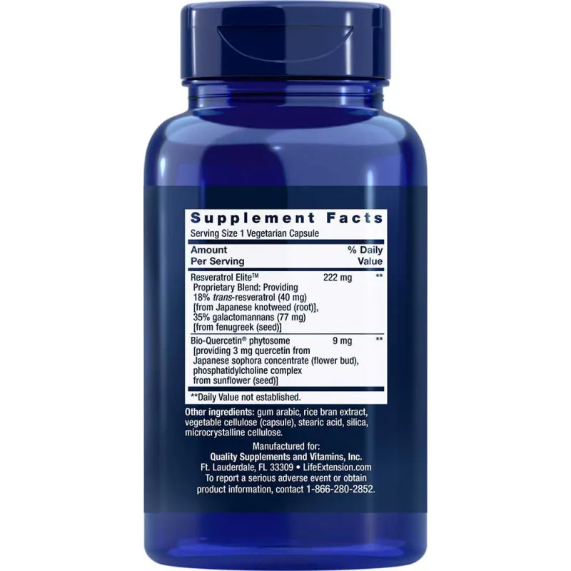Nasza formuła zawiera również kwercetynę - fitoskładnik uzupełniający działanie resweratrolu. Kwercetyna jest ważnym bioflawonoidem, który również hamuje stres oksydacyjny i wspomaga zdrową odpowiedź organizmu na czynniki zapalne. Kwercetyna wspomaga ponadto zdrowie układu krążenia i pomaga utrzymać prawidłowe już ciśnienie krwi. Ten bioflawonoid wspomaga też układ nerwowy i prawidłowe podziały komórkowe.[11-14]