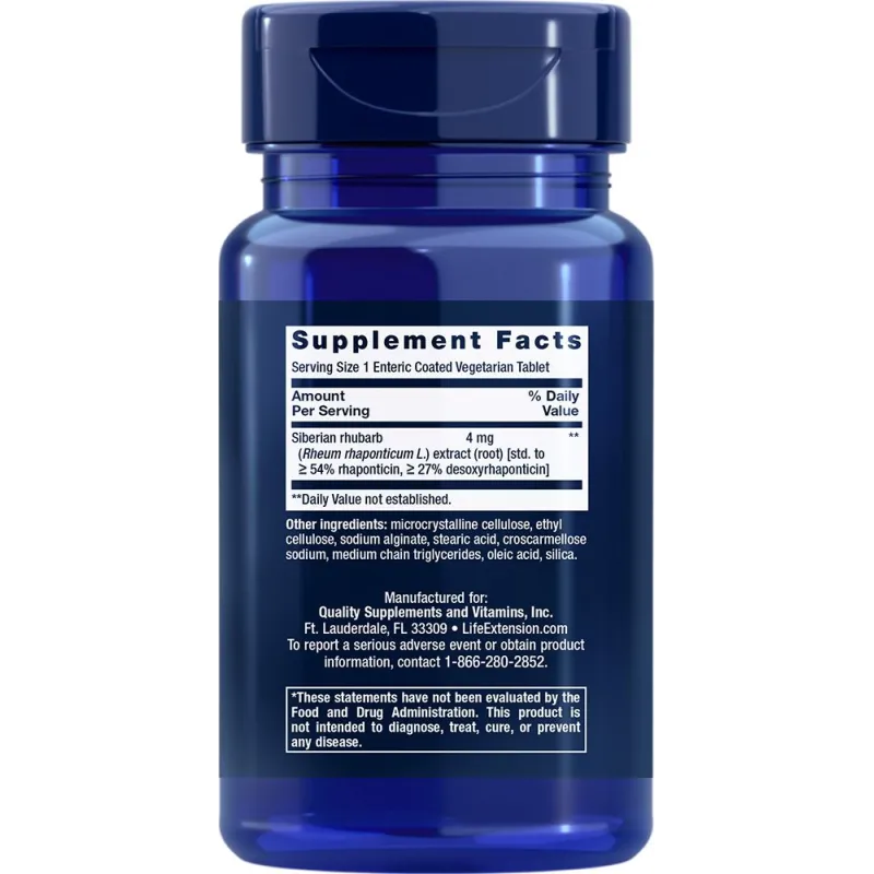 | Wyciąg z rabarbaru syberyjskiego (Rheum rhaponticum L.) (korzeń) [standardowo do ≥ 54% rapontycyny, ≥ 27% dezoksyrapontycyny] | 4 mg |