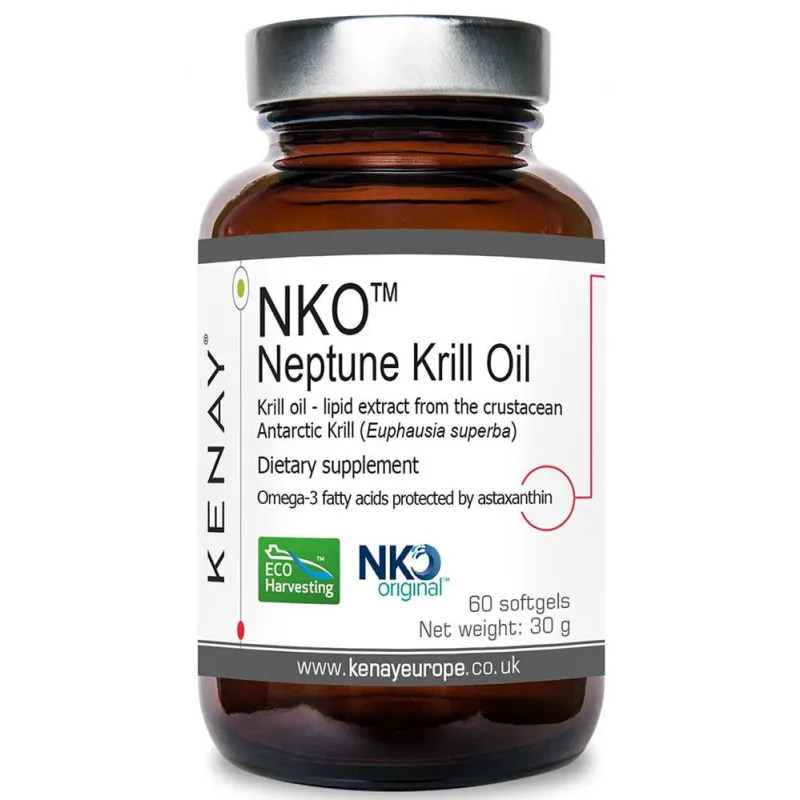 Olej z kryla zawiera unikalną kompozycję lipidów z wysokim stężeniem fosfolipidów, kwasu eikozapentaenowego (EPA) i kwasu dokozaheksaenowego (DHA). Zawiera również znaczne ilości innych składników bioaktywnych, takich jak astaksantyna, sterole, tokoferole, witamina A, flawonoidy i minerały.[1,2] Formuła NKO™ to synergiczne połączenie niezbędnych nienasyconych kwasów tłuszczowych, fosfolipidów i antyoksydantów.