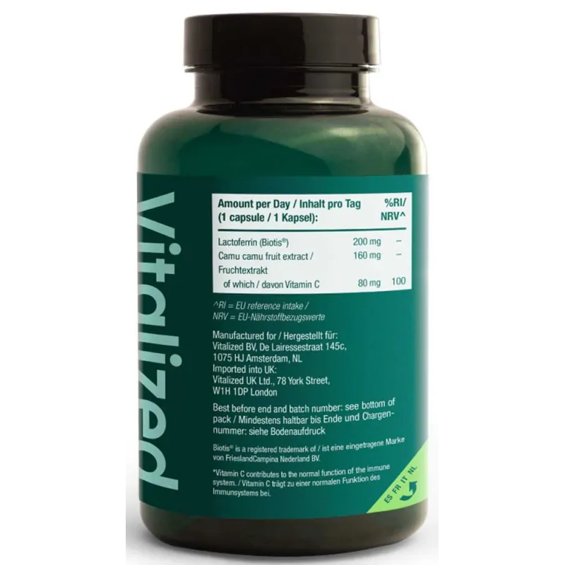 Vitalized wykorzystuje laktoferrynę Biotis® z Friesland Campina. Mając 25 lat doświadczenia, firma ta jest pionierem w produkcji laktoferyny. Ich laktoferyna była pierwszą, która została zatwierdzona przez EFSA. Jest wytwarzana ze świeżego holenderskiego mleka i przetwarzana szybko i ostrożnie, aby zachować jej doskonałe zalety.