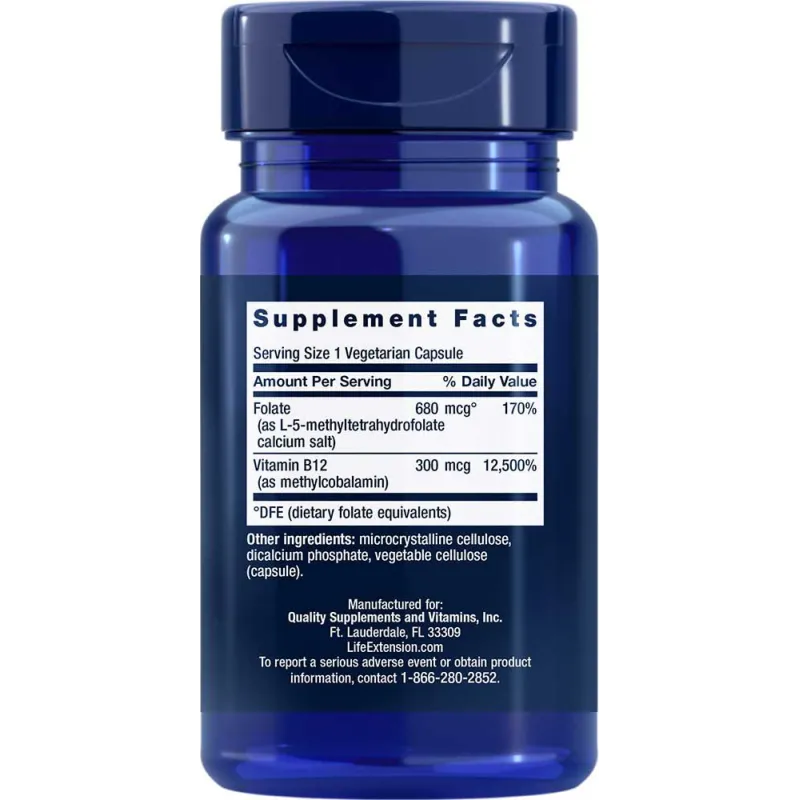 Suplement Bio Aktywny Kwas Foliowy z Witaminą B12 zawiera aktywne biologicznie formy kwasu foliowego (jako 5-metylotetrahydrofolian) oraz witaminę B12 (jako metylokobalaminę).